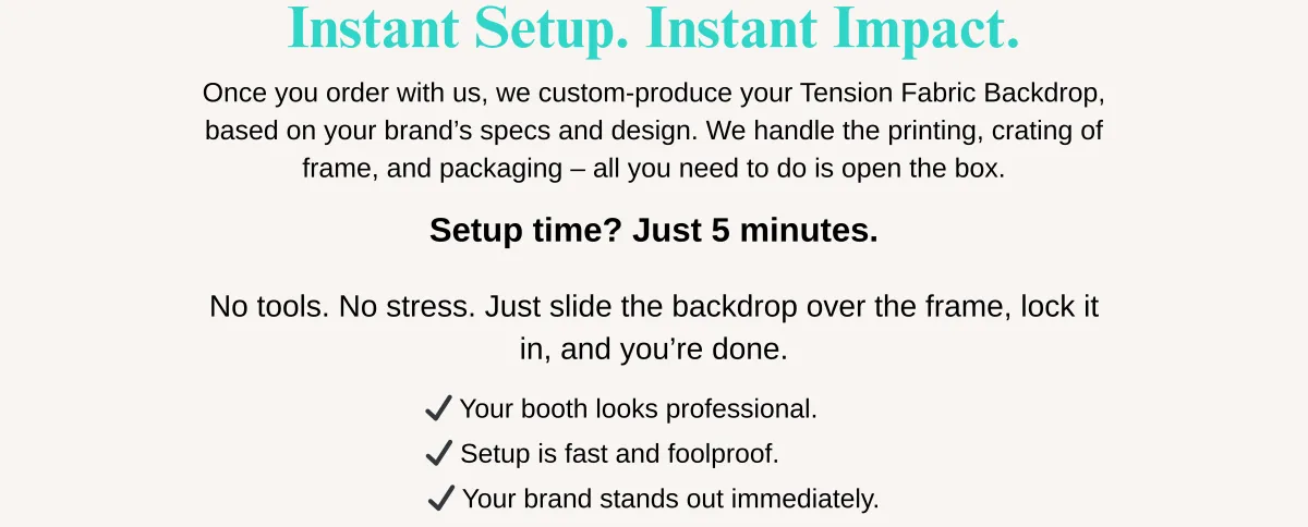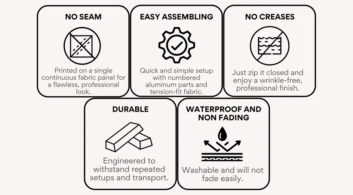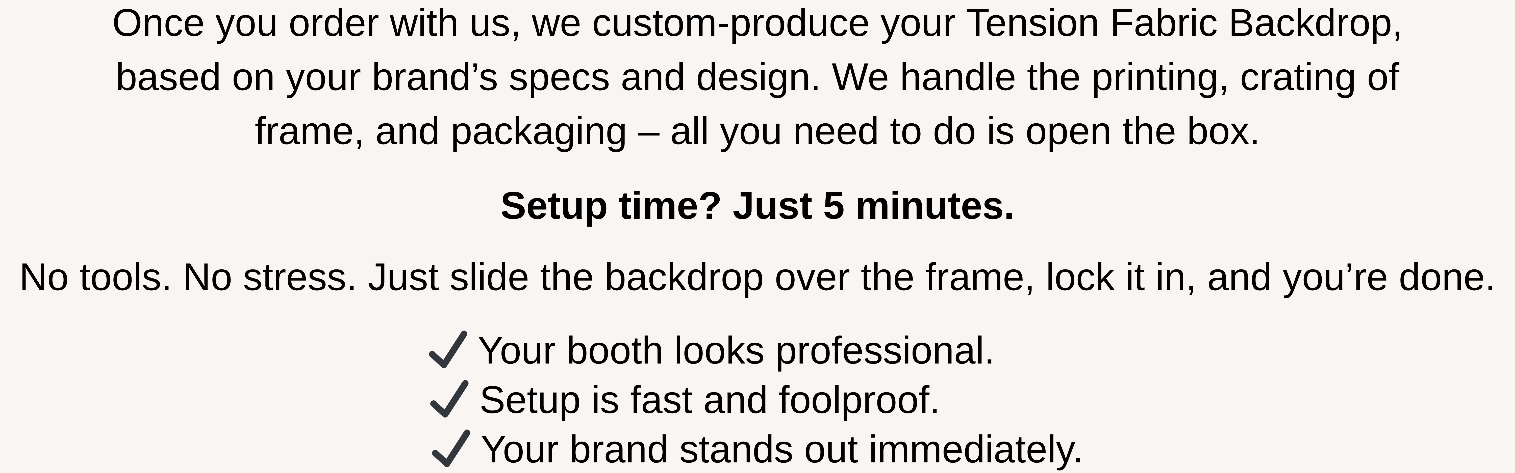 Finally, a custom tension fabric backdrop that gives your events a cohesive, high-end look that captures attention and instantly boost your brand perception.